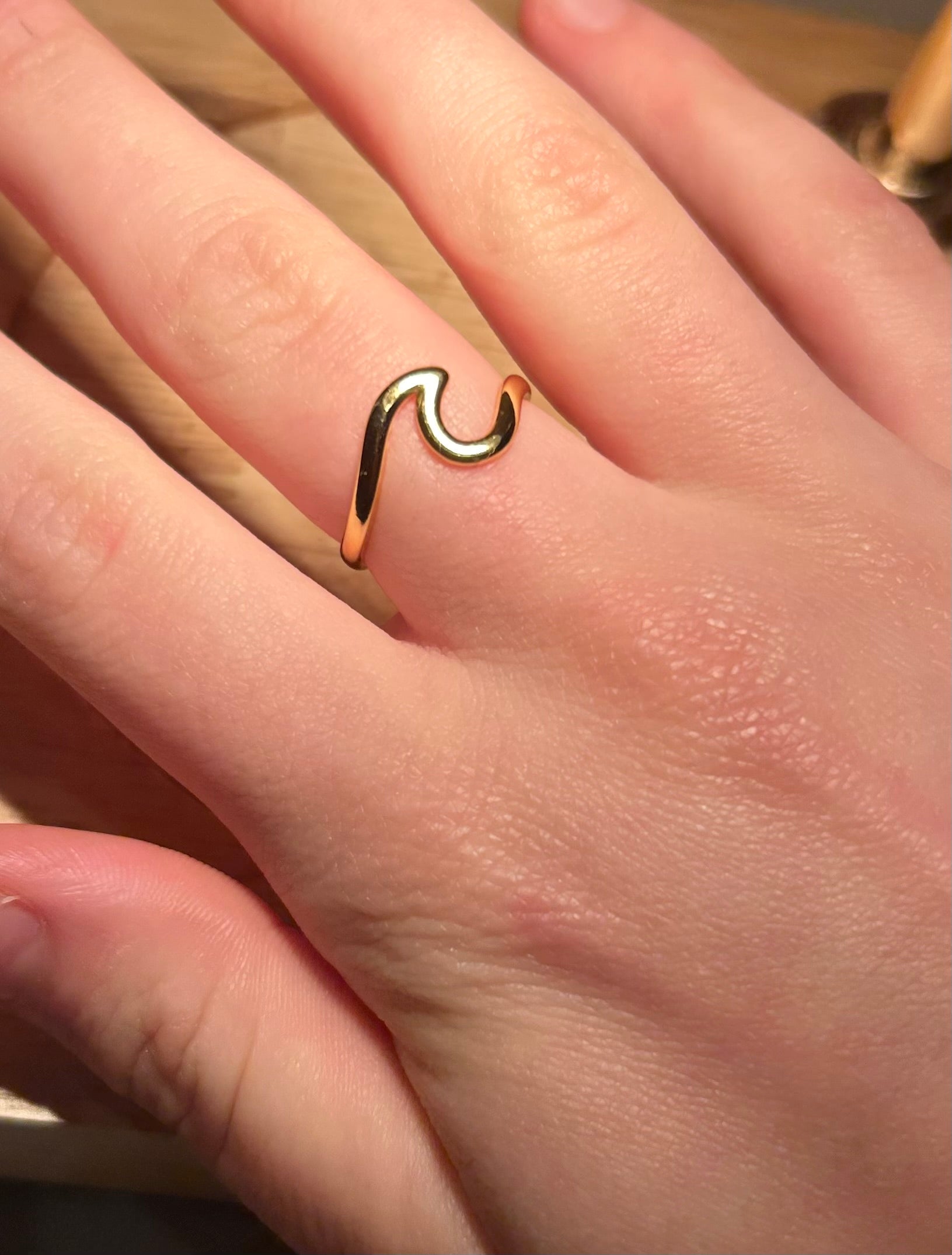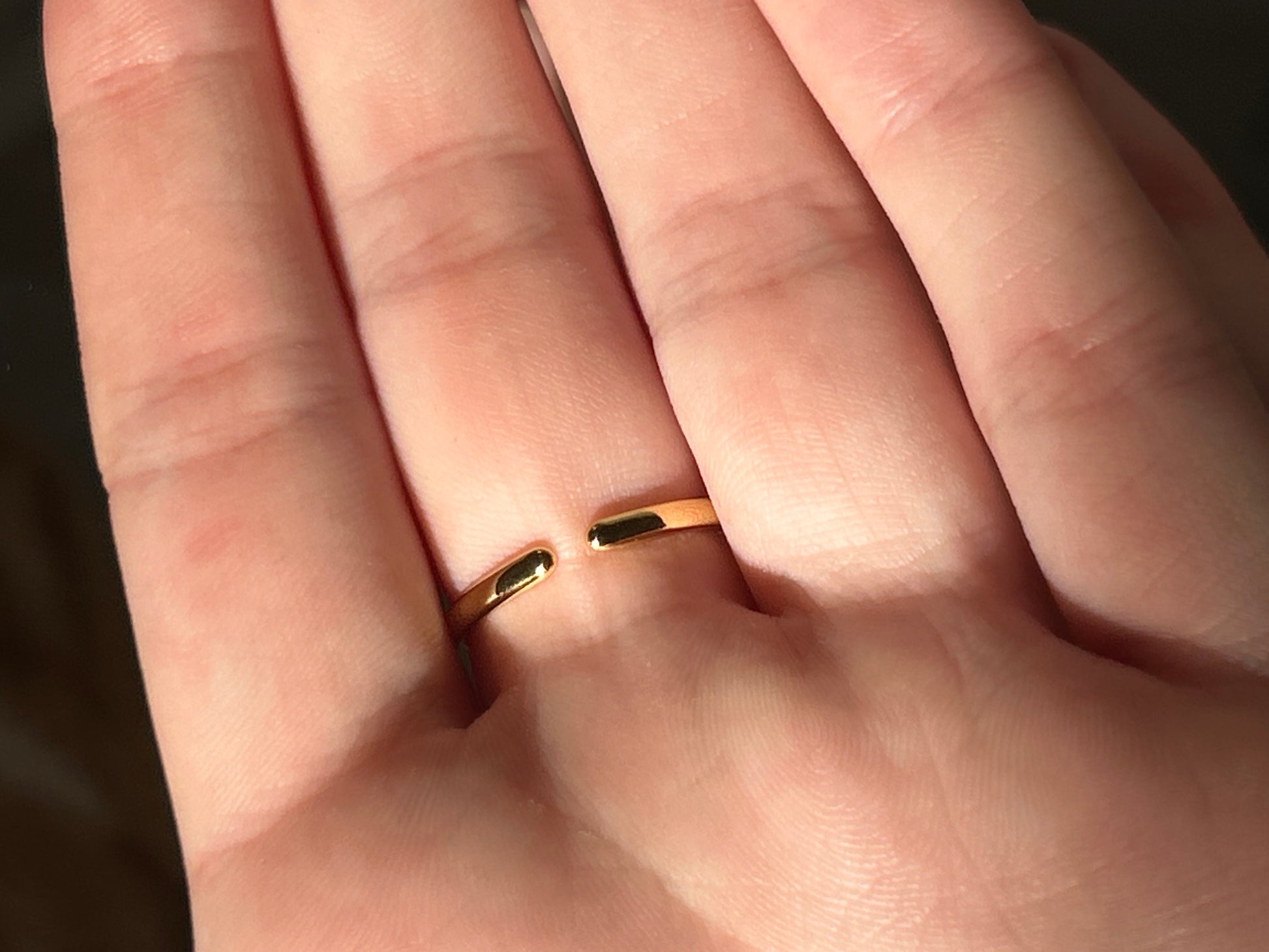 This chic adjustable ring is crafted from durable stainless steel with a polished gold-tone finish. Its fluid, wave-like design wraps elegantly around the finger, while the open band allows for a comfortable, customizable fit. Tarnish-resistant and hypoallergenic, it’s perfect for everyday wear—whether you style it solo for a minimalist touch or layer it with other rings for a bold statement